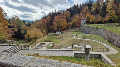 Gerade erst angekommen, begann unsere Tour auch schon. Vor dem Eingang erhielten die Schülerinnen und Schüler von einem fachkundigen Guide zunächst einen Überblick zur Geschichte des Lagers und den mehr oder weniger angrenzenden Granitsteinbrüchen. Außerdem konnten wir einen Einblick in den damaligen (leider schrecklichen) Alltag in solch einem Konzentrationslager gewinnen, indem wir den ehemaligen Appellplatz betraten. Auf diesem wurden die Häftlinge zum Teil stunden- oder tagelang bei Wind und Wetter dazu gezwungen strammzustehen. Der Platz fungierte aufgrund seiner zentralen Lage auch als Ort der Bestrafung und sogar Tötung. Weiterhin hatten die Klassen die Möglichkeit neben der Besichtigung der damaligen Wäscherei und dem Waschraum auch etwas über die Baracken zu erfahren, in welchen die Inhaftierten unter miserablen und menschenunwürdigen Bedingungen leben mussten. Den Abschluss bildete das sogenannte „Tal des Todes“ und der Ehrenfriedhof. Dort bestattete man nach der Befreiung des Konzentrationslagers, am 23.04.1945, die nicht mehr zu identifizierenden Häftlinge in würdevoller Art und Weise.