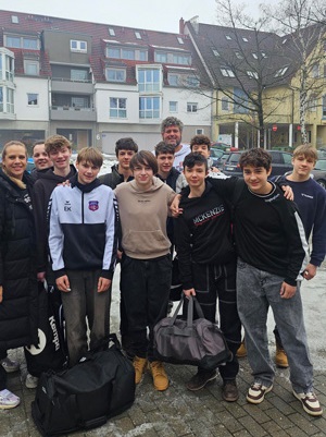 Die zweite Runde der Schulmeisterschaft (Regionalmeisterschaft) fand am 13.1.2026 in Eckental statt. Hier ging es gegen die Mannschaften des Gymnasium Eckental und dem Marie-Therese Gymnasium aus Erlangen. Nach ersterem Erfolg konnten noch F. Heißer (Wendelstein, Außen Kreis) und B. Sjöberg (Rückraum, TSV Feucht) zur Mannschaft stoßen. Nach Auslosung bestritten die Mannschaften aus Eckental und Erlangen die erste Partie. Gespielt auf hohem Niveau konnte sich Erlangen mit 15:17 durchsetzen. Die Erlangener mussten nach kurzer Pause direkt ihr zweites Spiel gegen Feucht bestreiten. In der ersten Halbzeit konnte sich keine Mannschaft wirklich absetzen. Der Rückraum, ergänzt durch B. Sjörberg, harmonierte gut und flüssig, so dass immer wieder sehenswerte Treffer erzielt werden konnten. In der zweiten Halbzeit änderte das Trainergespann Ch. & D. Dürndorfer die Taktik und stellte den Dreh- und Angelpunkt der Erlangener B. Sjöberg mit einer sehr offensive Deckung gegenüber, dessen Handlungsfelder daraufhin deutlich eingeschränkt wurden. In der Offensive spielten die Jungs weiterhin kreativ und gradlinig. Leider verlor man bei einer Führung von vier Toren fünf Minuten vor Schluss den sprichwörtlichen Faden, denn anstatt entspannt die Zeit „für sich spielen zu lassen“, kam es zu einer Reihe übereilter Abschlüsse, die postwendend zu Gegentoren führten, bei denen der ansonsten stark haltende Torhüter A. Pichl chancenlos war. 20 Sekunden vor Schluss stand es somit folgerichtig wieder unentschieden bei Feuchter Ballbesitz. Leider wurde der Abschluss ein weiteres Mal zu früh gesucht, so dass das MTG noch die Chance bekam, den Spielverlauf auf den Kopf zu drehen, doch das gelang nicht mehr. Somit endete die Partie aus Feuchter Sicht ärgerlich mit 15:15.