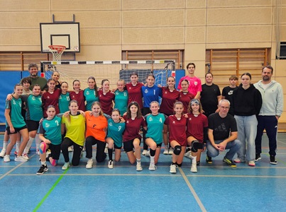 Die männliche Mannschaft spielte schon am 18.12. in Feucht die erste Runde der Schulmeisterschaft im Rahmen der Kreismeisterschaft gegen die Schulvertreter aus Hersbruck und Lauf. Die Mannschaft um Trainer C. Wagner und D. Dürndorfer setzte sich aus Vereinsspieler des TSV Feucht, JSG Nürnberg (Jugendspielgemeinschaft des TSV Winkelhaid und TV Altdorf) und TSV Wendelstein zusammen. Im einzigen Training erfreute sich Coach D. Dürndorfer darüber, dass der Rückraum der Wendelsteiner C-Jugend bestehend aus A. Novotny (Mitte), S. Graf (Rückraum Rechs) und J. Sellinger (Rückraum Links) eingespielt seine Klasse beweisen konnte. Ergänzt wurde die Wendelsteiner Rückraumachse durch E. Kübert am Kreis und F. Weinert und A. Schneeweiß auf den Außenposition von der JSG. Die Feuchter stellten mit T. Kraus (Außen) und A. Pichl im Tor wichtige Elemente der Schulmannschaft Feucht. In der ersten Runde durfte die 2014er Jahrgänge F. Bloß, S. Claus und K. Selinger „aushelfen“. Sie waren im Training dabei und bekamen alle Kurzeinsätze. Die Trainer hoffen kommendes Schuljahr eine eigene Mannschaft für die 2014er Jahrgänge melden zu können, um den Talenten Raum und Bühne für ihr aufblühendes Handballtalent bieten zu können.