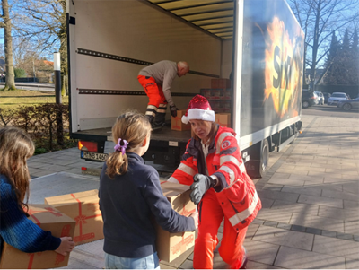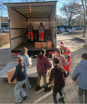 Auch in diesem Jahr hat unsere Schule wieder mit großem Engagement an der Spendenaktion der Johanniter-Weihnachtstrucker teilgenommen. Gemeinsam mit Schülerinnen und Schülern, Lehrkräften und Eltern haben wir viele Pakete mit Grundnahrungsmitteln, Hygieneartikeln und kleinen Geschenken gepackt — ganz nach der offiziellen Packliste der Aktion. Als der Truck dann endlich am 10.12.25 in die Einfahrt der Schule der einrollte, ergriffen die Schülerinnen und Schüler der 5A sofort die Initiative und halfen den Johannitern fleißig beim Heraustragen und Einladen der Pakete.