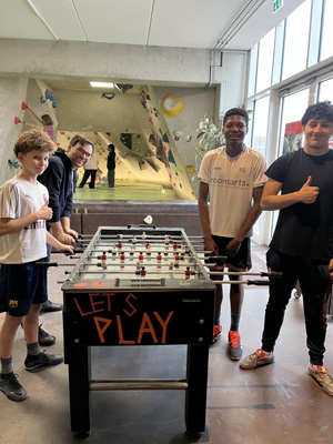 Ein weiterer Höhepunkt der Woche war der Besuch im Café Kraft, wo die Schülerinnen und Schüler erste Erfahrungen im Bouldern sammeln konnten. Nach einer fachkundigen Einführung durch einen Klettertrainer durften sie eigenständig in Kleingruppen verschiedene Boulder-Routen ausprobieren. Neben der Förderung von Kraft und Koordination stand hier vor allem das gegenseitige Unterstützen und Vertrauen im Mittelpunkt.